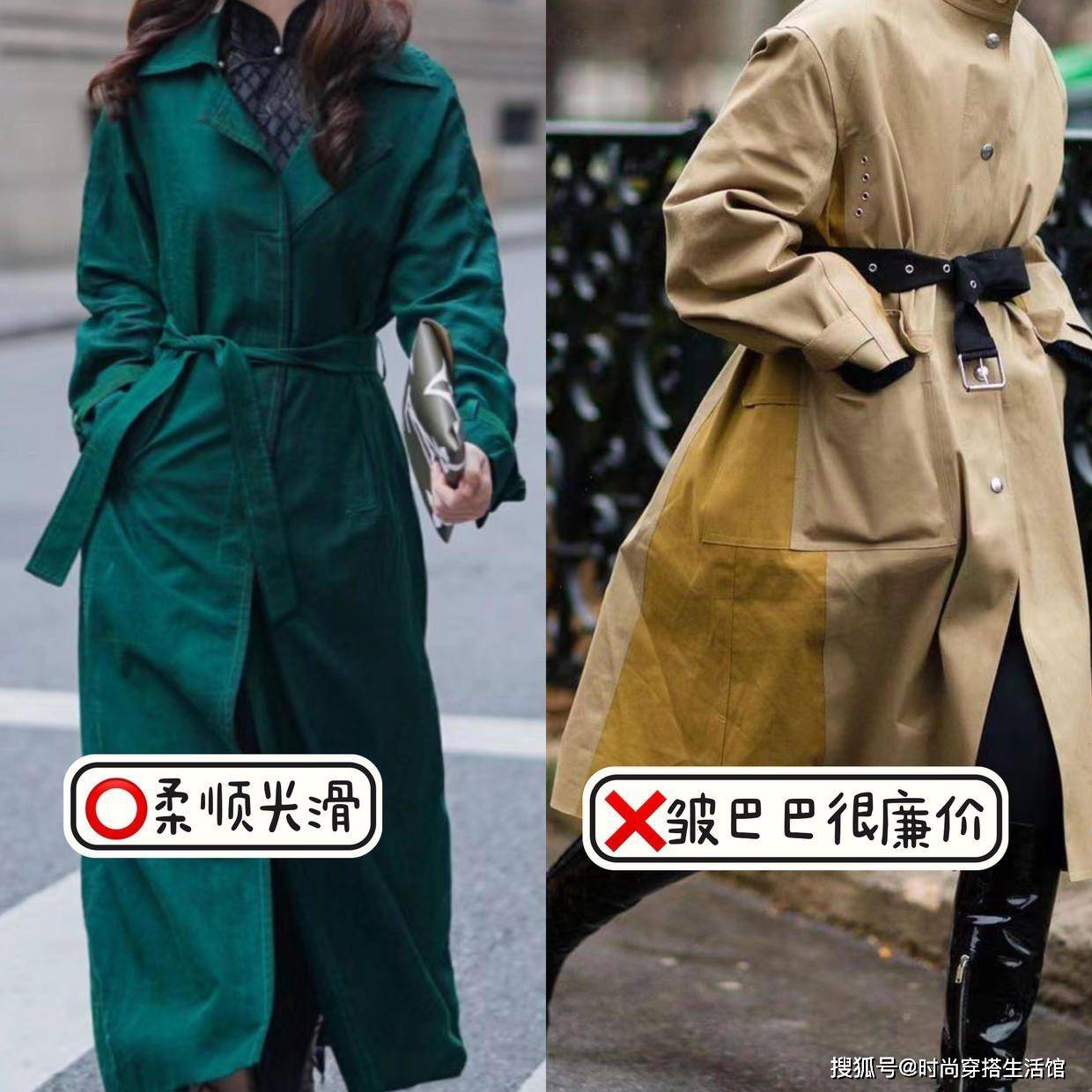 挑选风衣,很重要的一点就是挑选材质,材质挑选不可以廉价,流行的风衣基本上就是纯棉,羊毛,聚酯纤维,腈纶,真丝材质,其中比较时髦耐穿的是羊毛和纯棉,质感看起来基本上都很不错。像那种材质廉价皱巴巴的风衣我们就一定要学会拒绝,搭配起来太容易显没气质了。