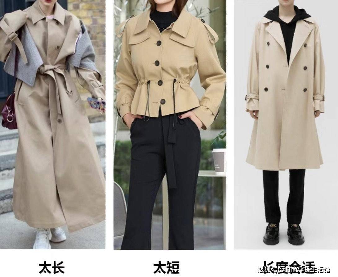 对小个子女生而言,风衣的衣长非常重要,风衣过长,小个子女生穿会压身高,显得拖沓,从而显矮;而风衣过短,又容易将身材五五分,无法展现身材曲线。
