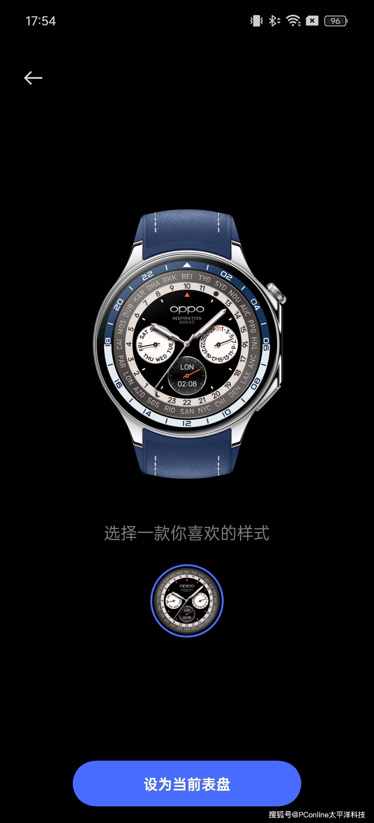 首先来看到OPPO Watch X的配色,这次咱们拿到的是千帆蔚蓝配色,不锈钢的机身配合上蔚蓝色的表带,兼顾运动和商务气息,稳重且不失活力。此外,这款手表还有另外两个不同风格的配色,分别是星夜飞行与大漠银月配色(共三款配色)。