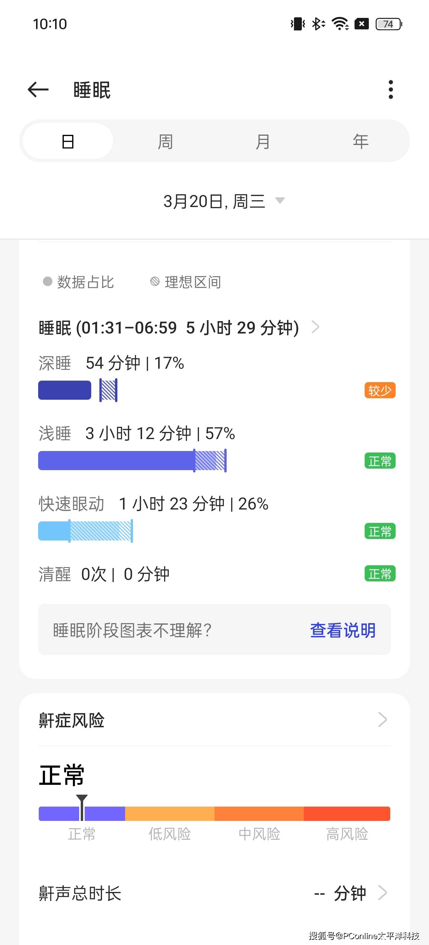 在我国大约有1.76亿人可能会打鼾,但是被诊断出来和接受治疗的人都不到1%。如果长时间不去治疗,打鼾可能会导致心脏和血管的问题,甚至影响到身体的新陈代谢。OPPO Watch X的鼾症风险评估功能,在常规睡眠数据监测基础上,能结合睡眠呼吸特征变化以及鼾声信息,通过AI算法识别鼾症风险等级,监测数据对比医学金标仪器准确率达到了93.9%,能够及时准确判断出用户的鼾症风险。