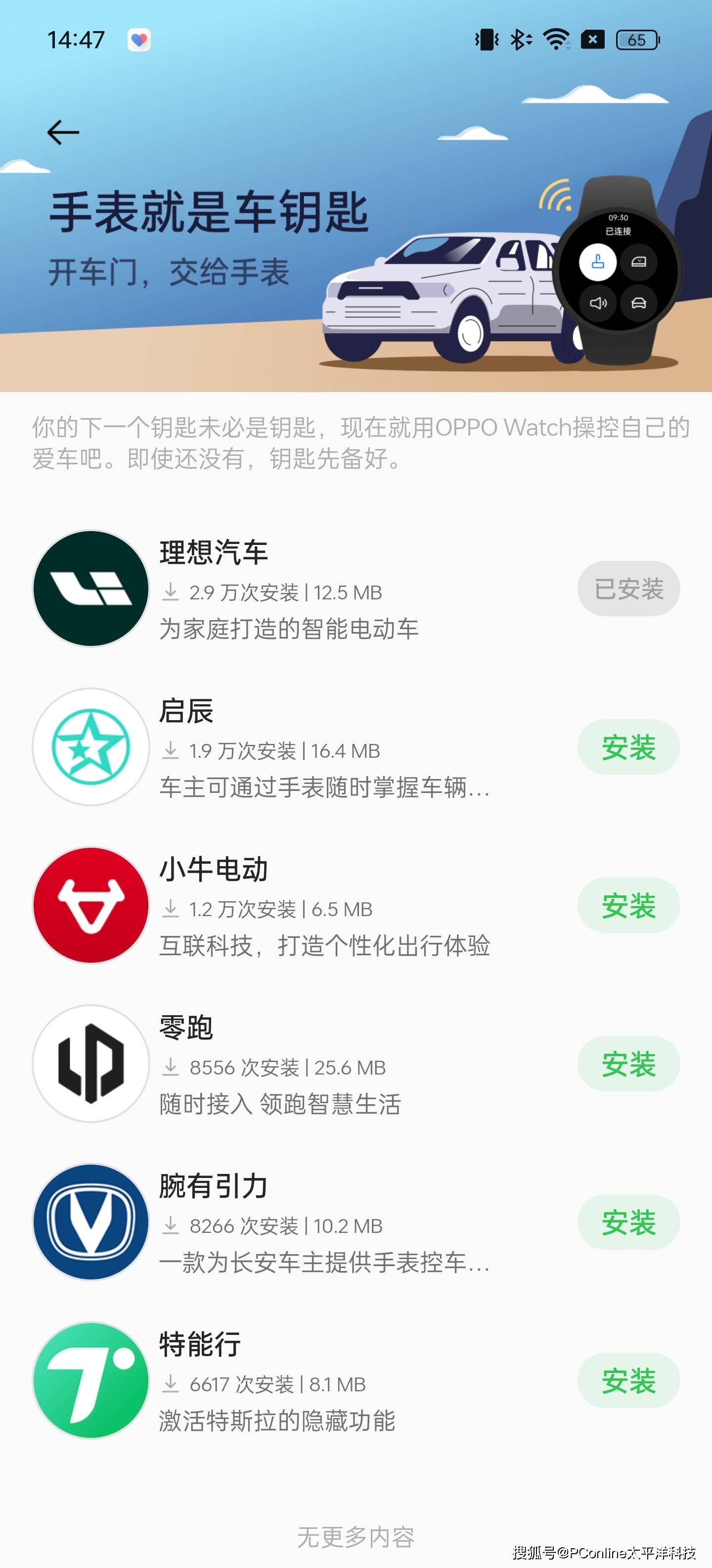 OPPO Watch X还支持作为多款车型的车钥匙以及车控。其中OPPO Watch系列与理想深度合作,打造了系统级无感车钥匙。佩戴OPPO Watch X安装理想汽车App,能够实现靠近车门自动开关锁,并且手表能够做到后台常驻不断连,在车机使用上表盘的小组件。无感体验,进一步打通了手表与车的互联。