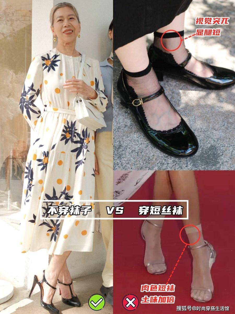 短丝袜真的是丝袜里面的“死亡单品”,几乎怎么穿都摆脱不了“大妈感”,尤其是肉色短丝袜,简直就是土味和廉价感的双重暴击,再和踝上裙组合,露出整个袜子,完全让人无法get 它的美!