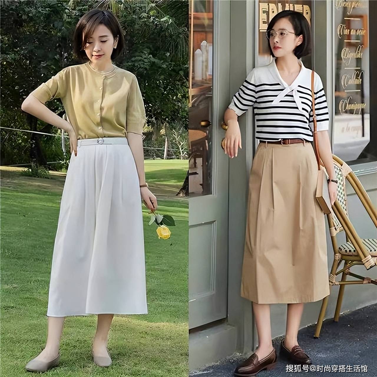 >>春天穿过膝裙+单鞋的具体示范