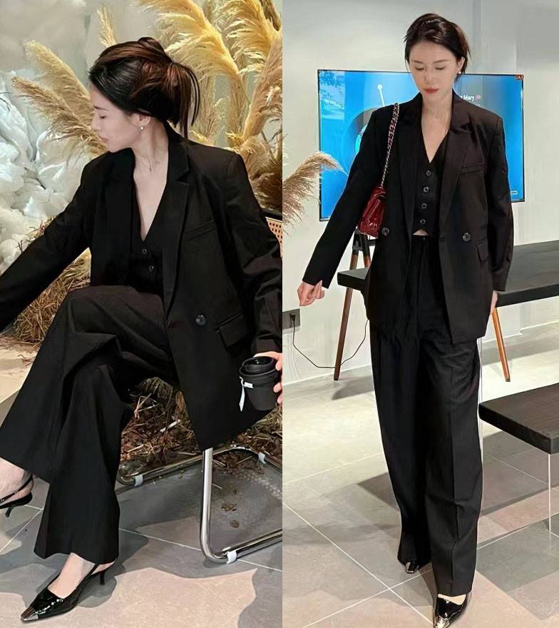 对于那些会搭配的女人来说,她们永远不会使黑色系穿搭展现出无趣的一面,反而可以利用服装具备的高级质感,在视觉上烘托出神秘又优雅的氛围感。