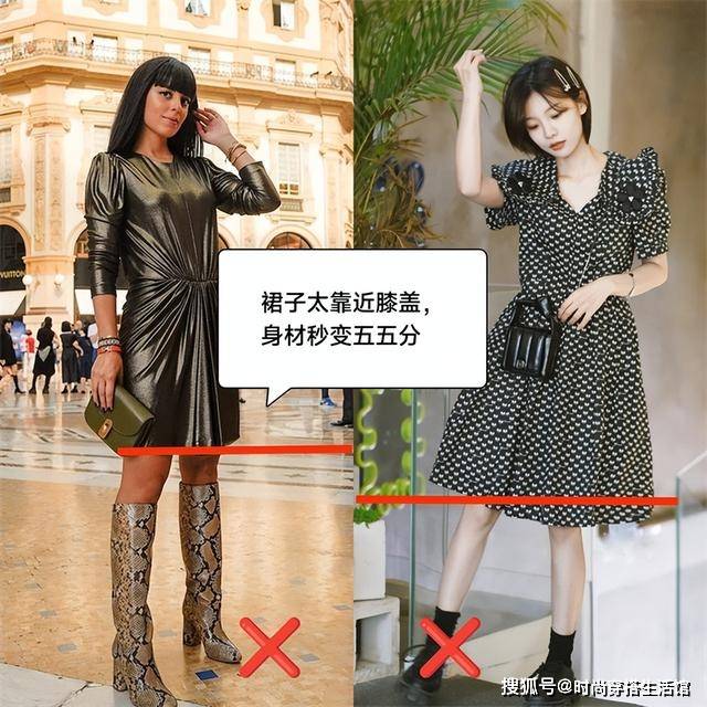 ①避开靠近膝盖的裙长,容易变五五分