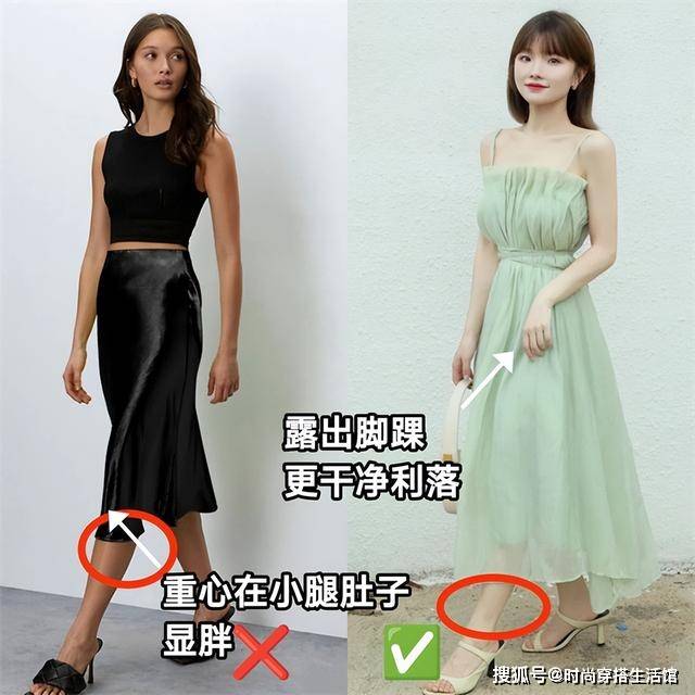 ③避开拖地过踝裙,小个子穿了最显矮