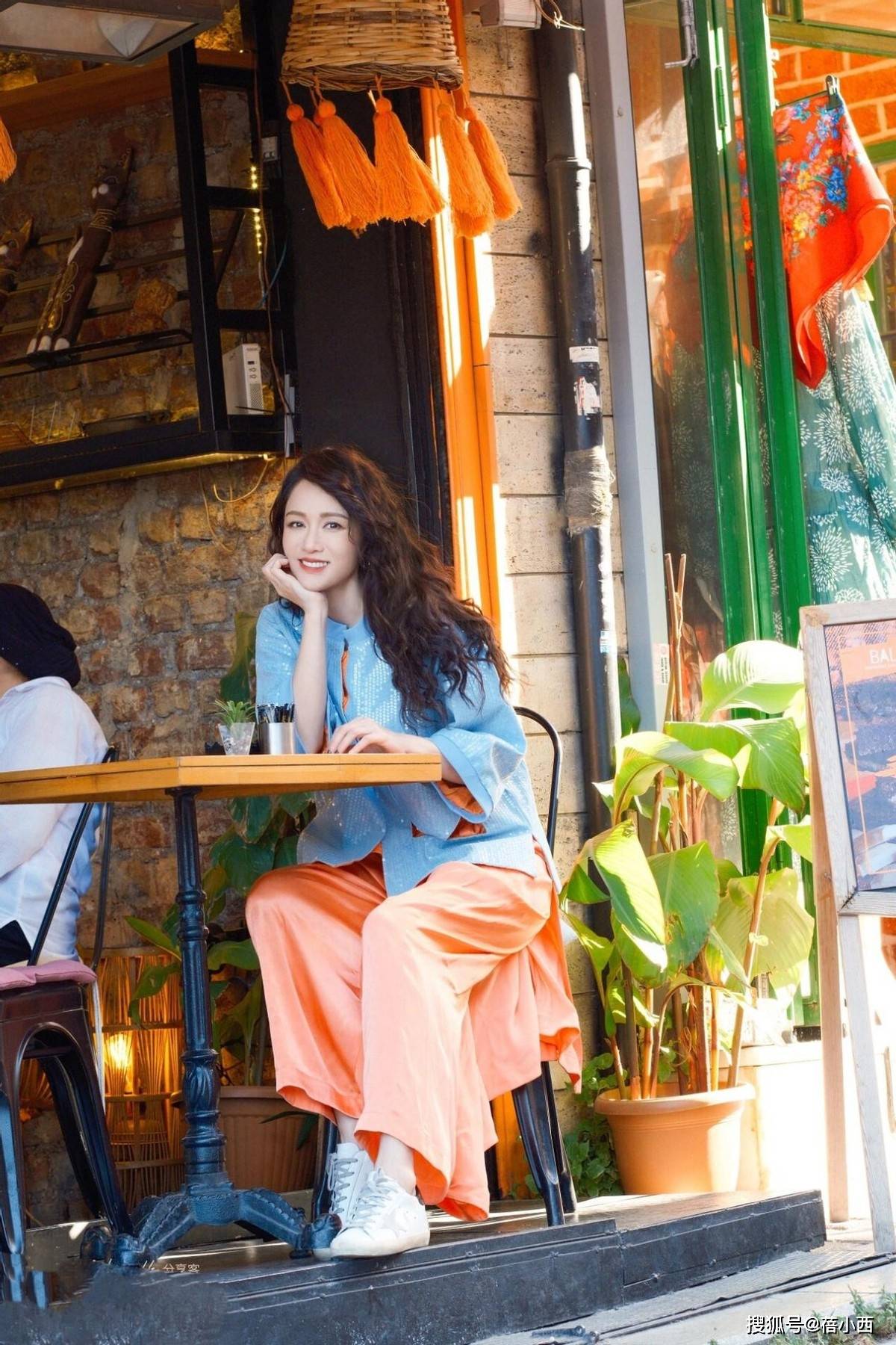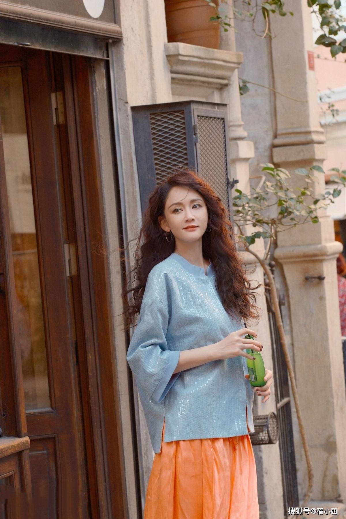 陈乔恩结婚后烫了羊毛卷,穿新中式+橘裙去度假,44岁美出新高度