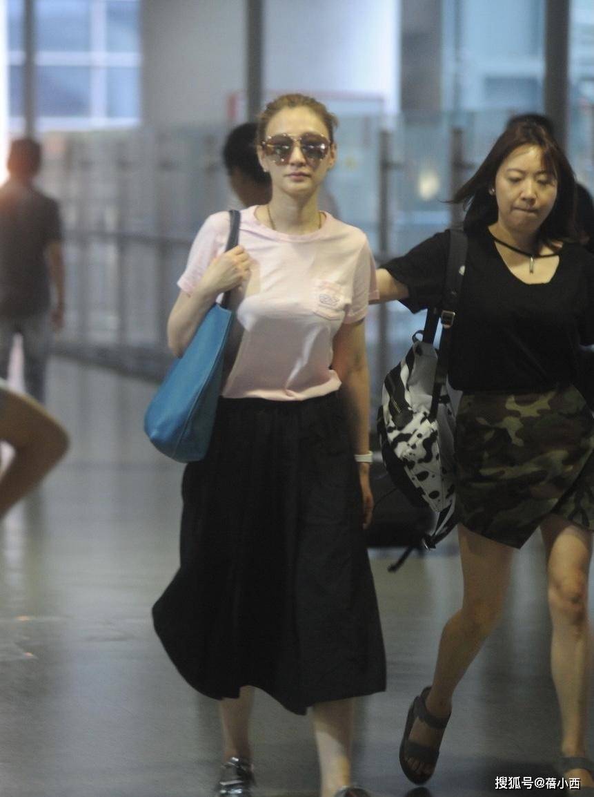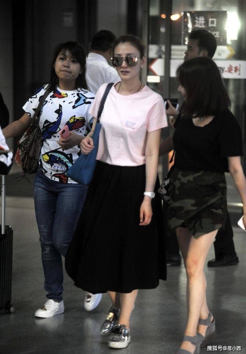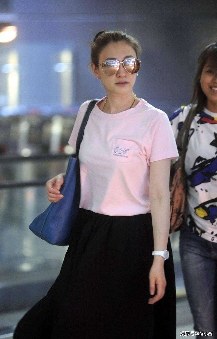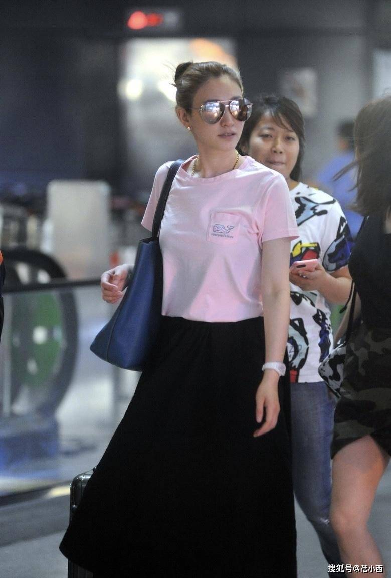 47岁李小冉带火了极简穿搭:粉色T恤+半身裙+丸子头,高级又洋气
