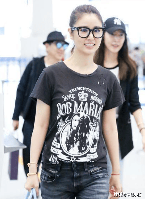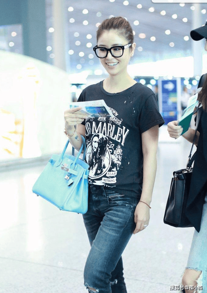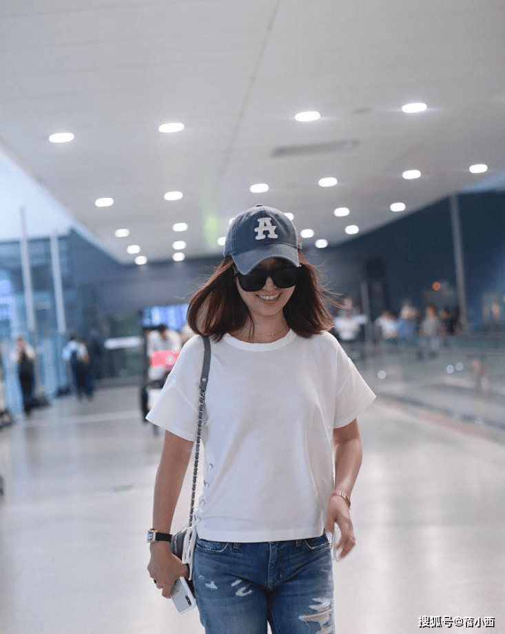林心如罕见这么时髦,穿烂T恤+牛仔裤+麻花辫走机场,洋气又减龄