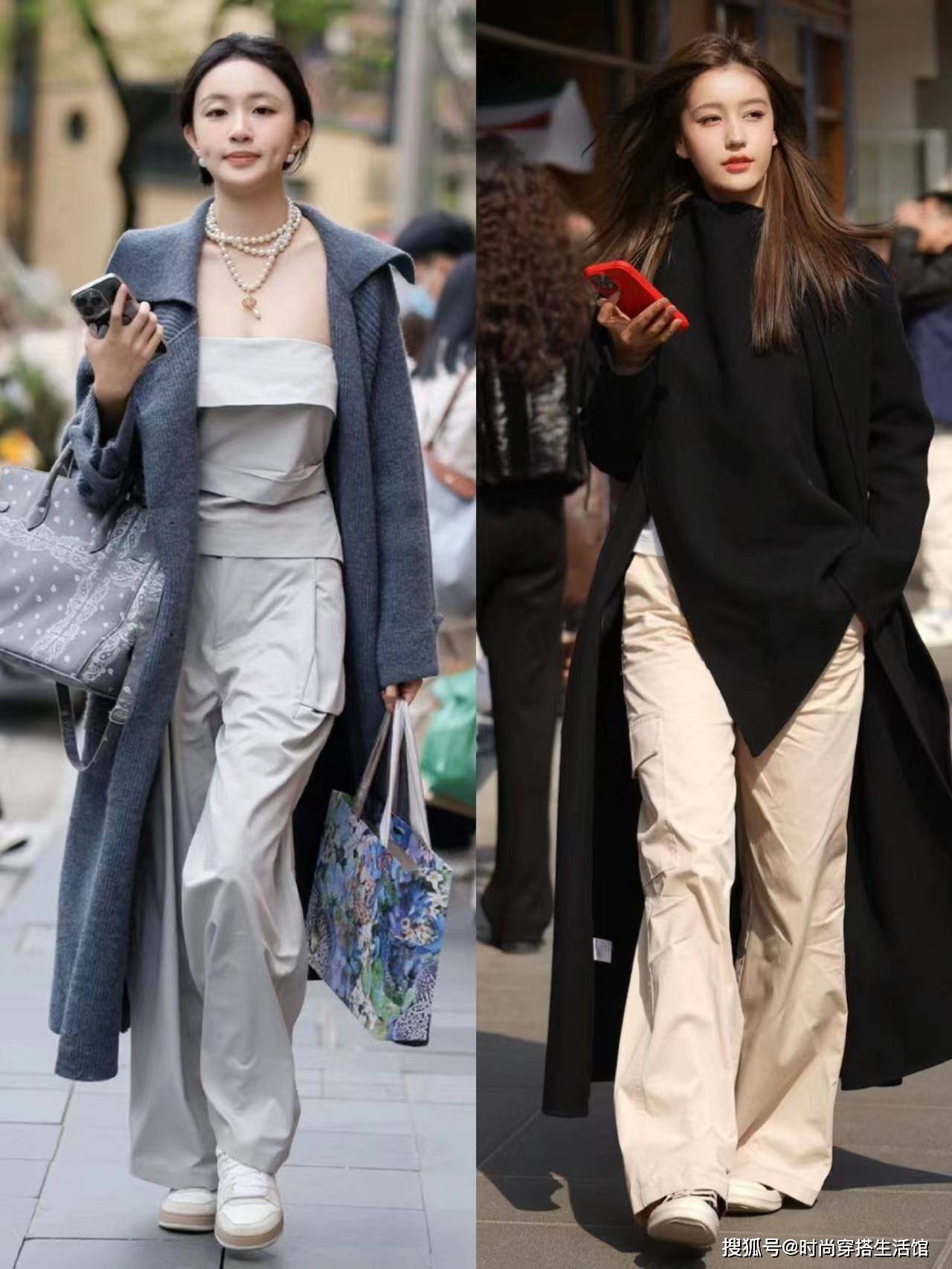 >>今春西裤有了新穿法,上海大街小巷都在流行“西裤+运动鞋”