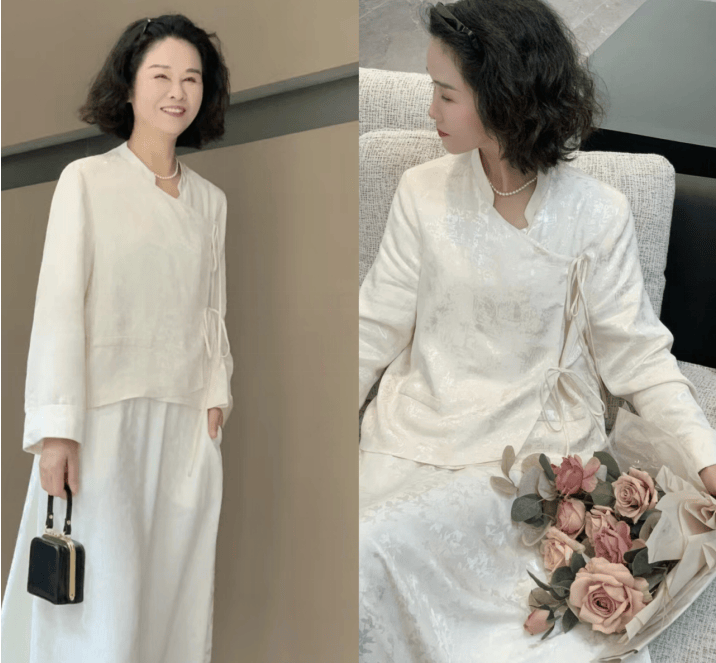 这条白色过膝半身裙,可以搭配同样是白色的新中式上衣,而让女性的古典韵味得到一个充沛的展示。对于50岁以上的人来说,也是能够体现出高级魅力的存在。