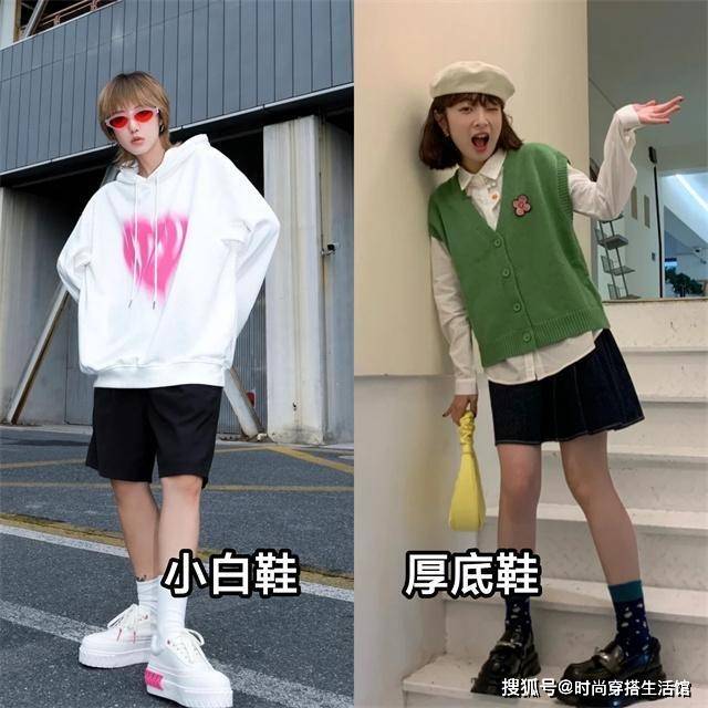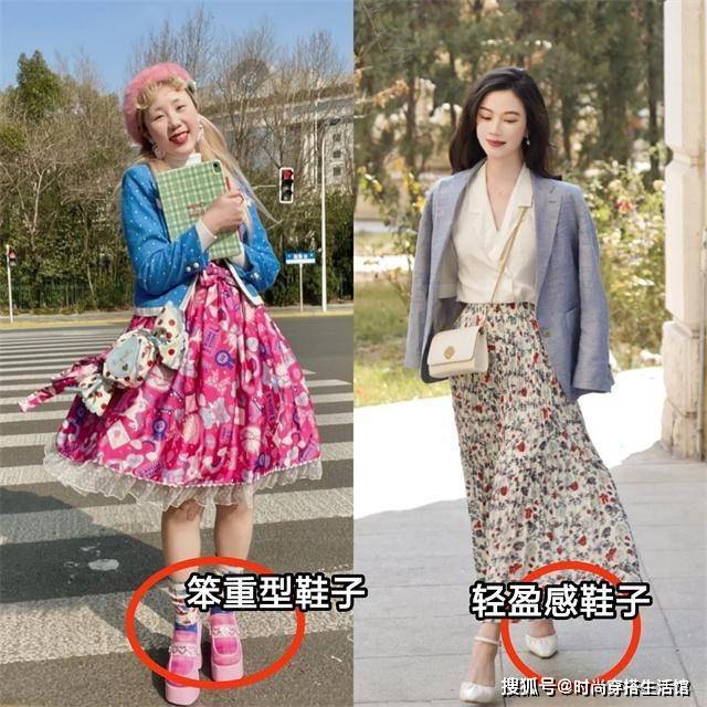 不仅身材如此,鞋子也是一样。左边这种高防水台、方鞋头的笨重型鞋子一看就很显胖显矮。