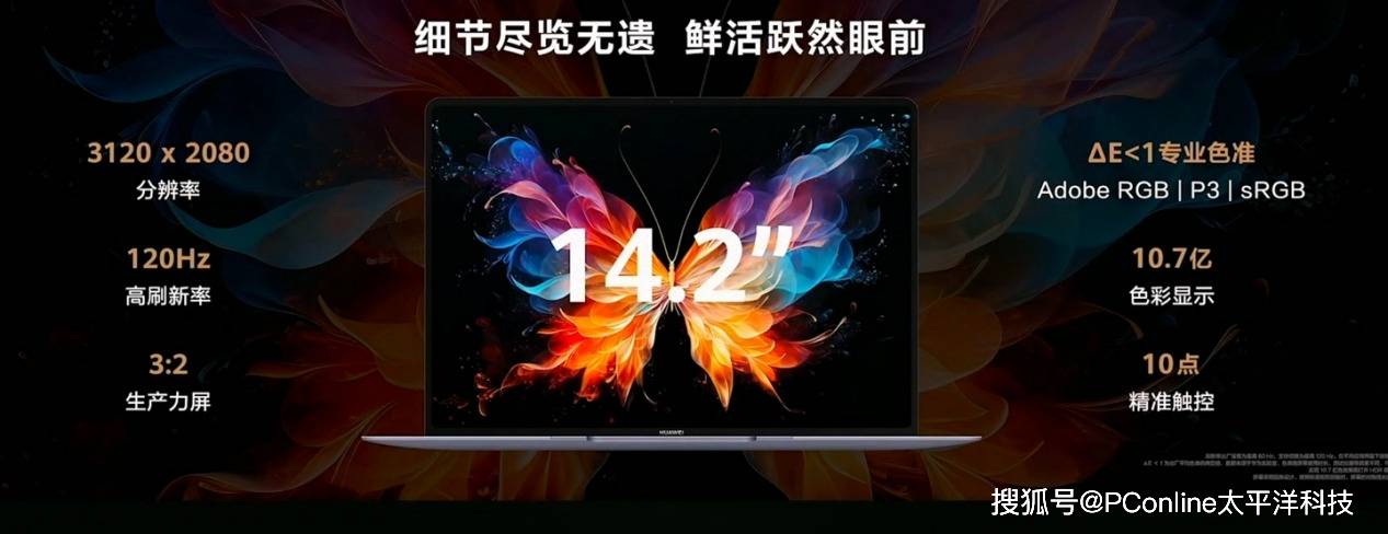 屏幕方面,华为MateBook X Pro配备了一块少见的14.2英寸、3:2比例的OLED屏幕,更大的纵向空间非常适合办公、学习人群浏览网页、编辑文档、查看文献等场景的使用;分辨率达到3120*2080,刷新率120Hz,支持10点触控。