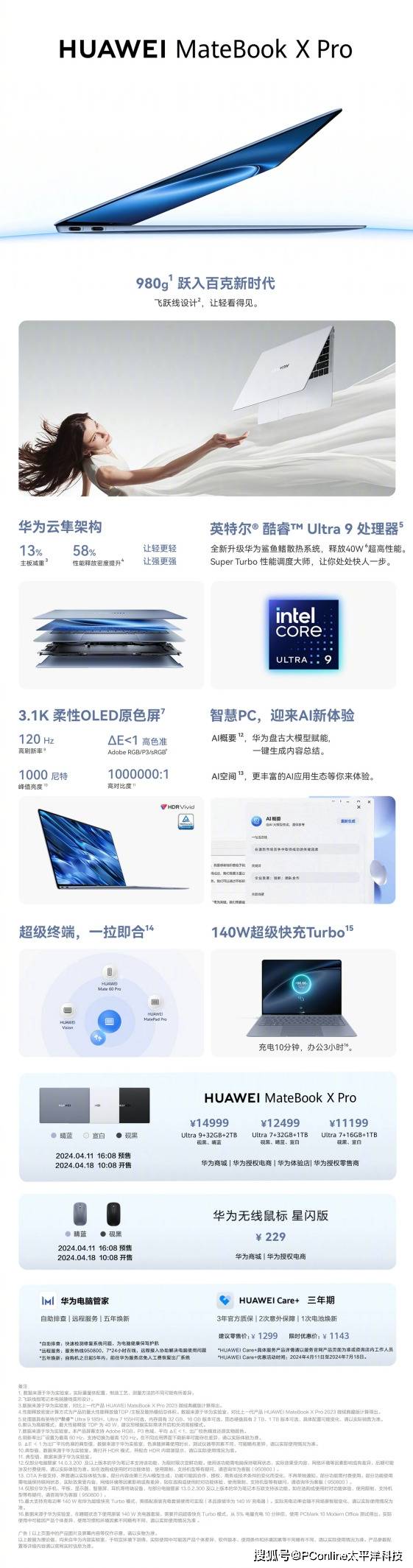 华为MateBook X Pro与华为无线鼠标星闪版均已于4月11日16:08开启预售,将于4月18日10:08正式开售。