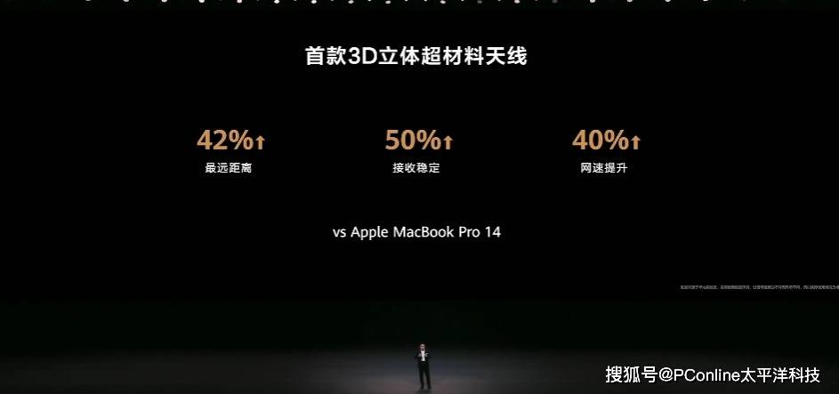 作为通讯巨头,华为MateBook X Pro搭载了首款3D立体超材料天线,与苹果MacBook Pro 14对比,无线网络连接最远距离提升42%、稳定性提升50%、网速提升40%。