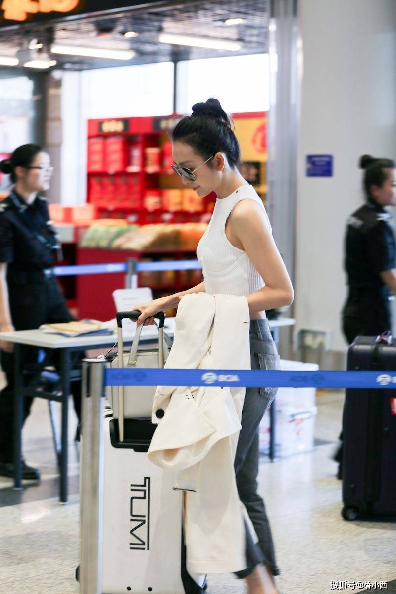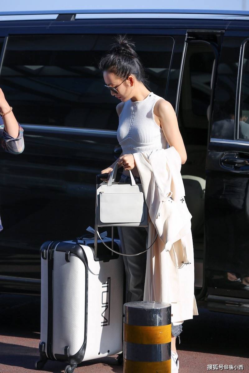 王鸥的包包、行李箱和胳膊上的长款外套,和她的上衣颜色很是搭配,不会让人有眼花缭乱的感觉,氛围感很强,也很和谐。