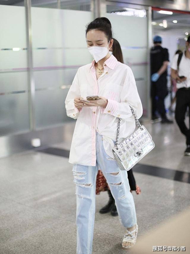 永不过时的牛仔裤不挑年龄、性别,王鸥的这款裤子腿脚处是毛边设计,展现出了她独特的品味,在王鸥170身材的加持下,一双修长的美腿让人挪不开眼。