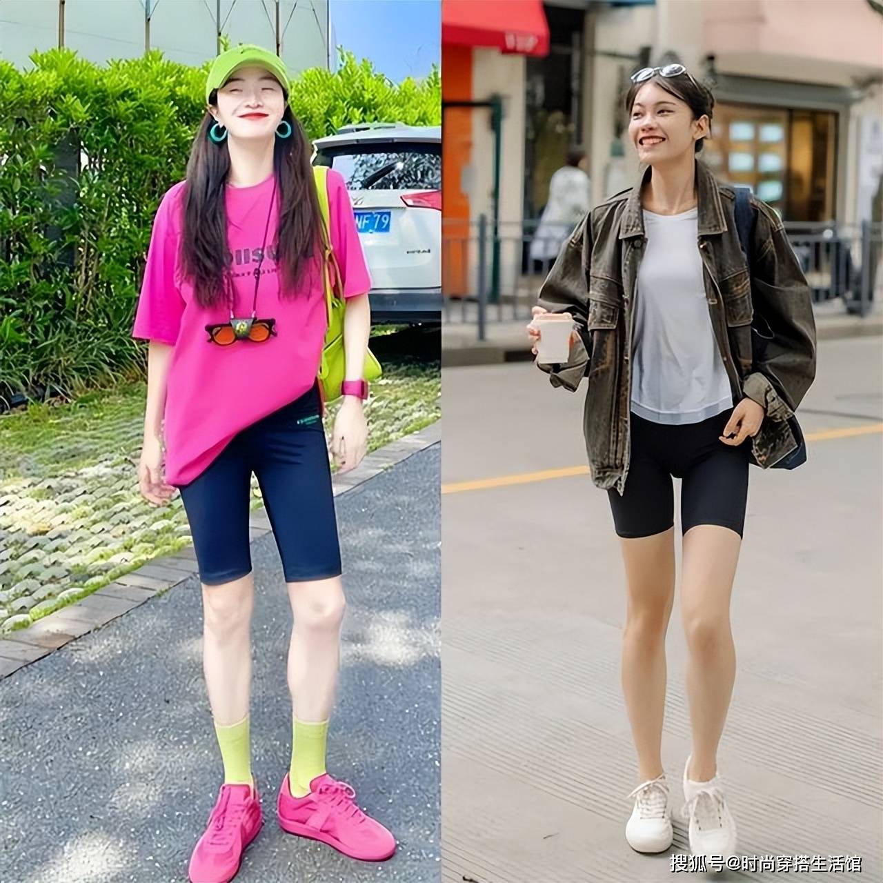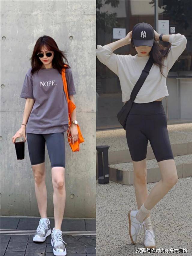 但穿T恤也不是那么容易的事情,要穿得好看时髦,可以试试今年流行的一组穿搭:“长T+长单车裤”,这一组搭配的时髦度高,显瘦增高效果好,微胖、梨形身材都可以尝试。