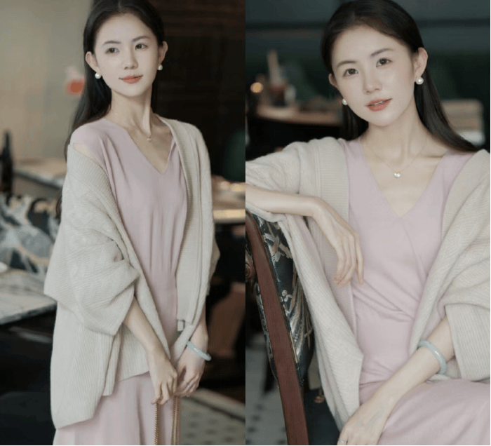 在具体的颜色的搭配上,每个人的见解不同,这一套穿搭就可以让女性的雅致魅力和温柔温婉的风采得到诠释。外套的是浅卡其色的开衫,搭配粉色裙装,一点都不会有装嫩的感觉。