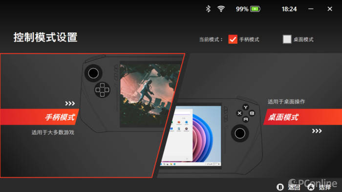 众所周知,Windows桌面操作对于掌机设备并不友好。微星便在系统中加入了针对摇杆和按键的操作优化。当我开启“桌面模式”后,左摇杆可移动光标;右摇杆为向上/向下滚动;A键左击;B键右击,学习成本并不是很高,不过仍需要一段时间来适应。当然,如果大家期望将它当作普通PC使用,我还是更建议连接无线键鼠或是通过扩展坞连接有线键鼠。