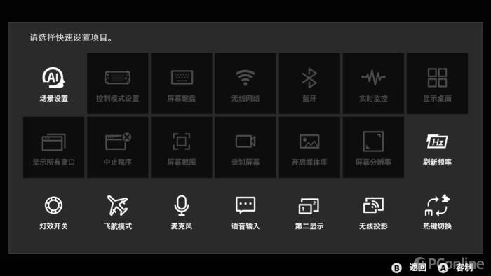 另外,我们还可自定义此设置栏,加入屏幕刷新率调节(可切换48Hz、60Hz、120Hz)、屏幕分辨率调节(可切换720P和1080P),性能模式调节(可定义CPU功耗)等功能以满足不同游戏需要(可降低游戏卡顿或延长整机续航等)。