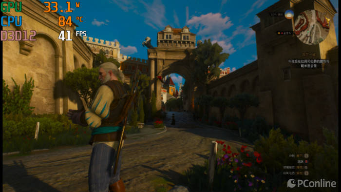 不过,《巫师3》的体验就很好了,中画质下画面观感已经很不错了,即便在对性能要求极高的主城中,帧数也能远远超过30FPS。