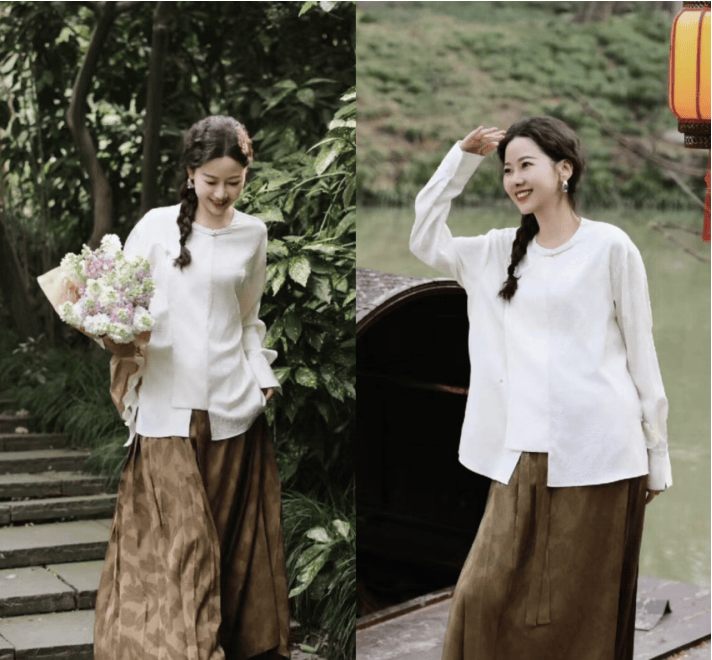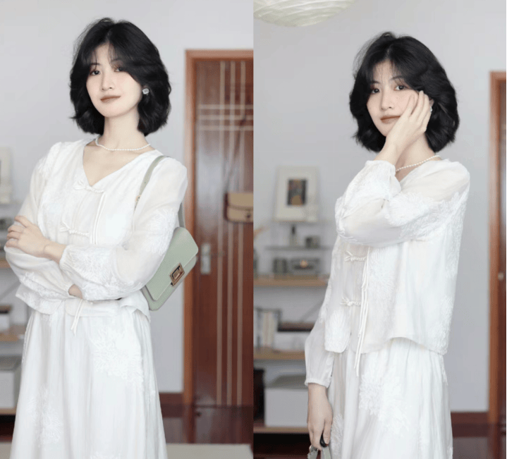这组白色的新中式穿搭,属于绝对很好驾驭的类型,从这一单品着手,大家不会觉得穿衣很难。