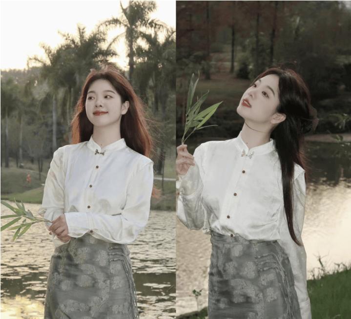新中式穿搭其实有着明确的对个人气质的提升效果,就算选用的是最普通的新中式上衣,也会看起来比一般的T恤更加高级。