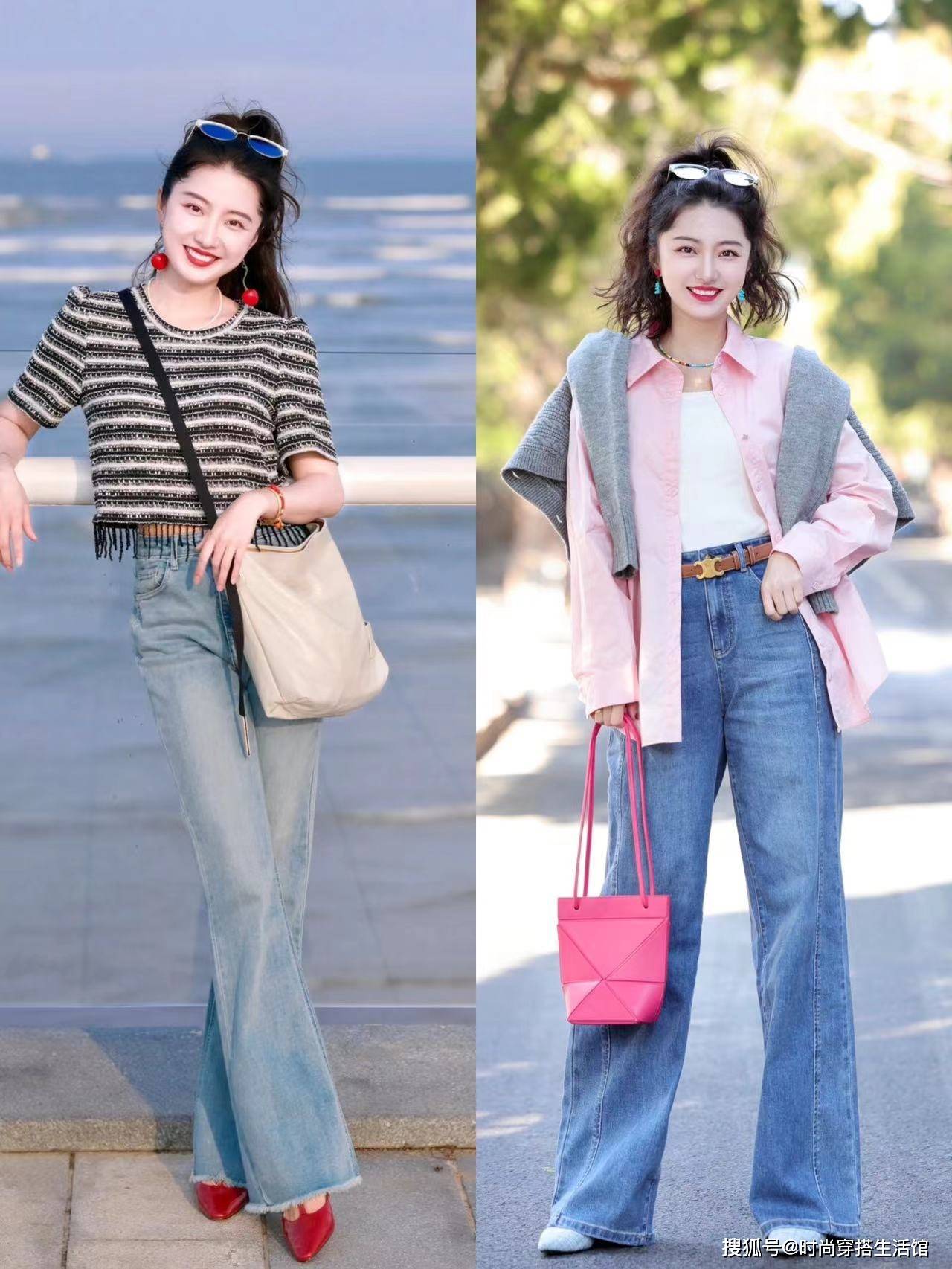 如果想找到更适合自己的穿法,那我们首先就得在牛仔裤的挑选上多下功夫。比较基础常见的小脚牛仔裤、直筒牛仔裤,就不在这里过多赘述,显腿细还能修饰腿型。