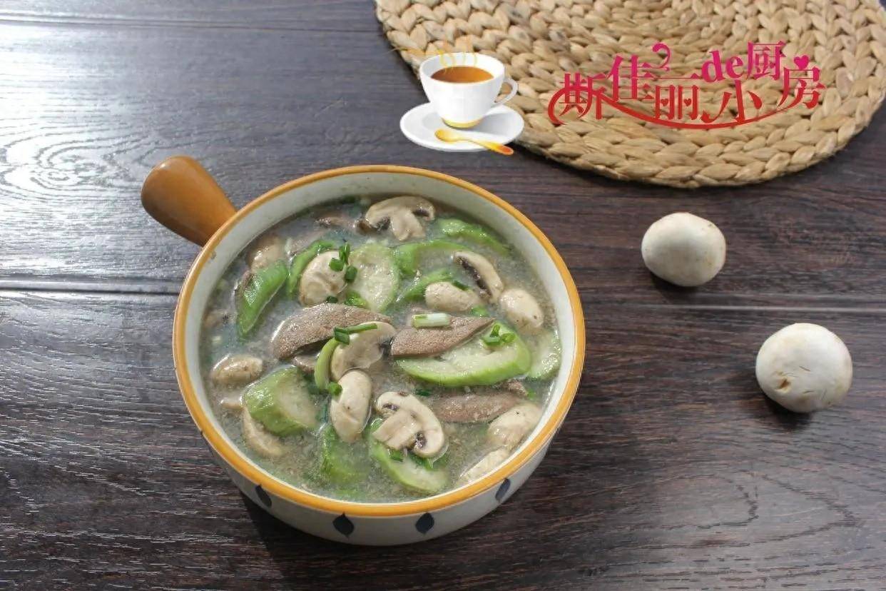一、推荐菜谱 【口蘑丝瓜猪肝汤】