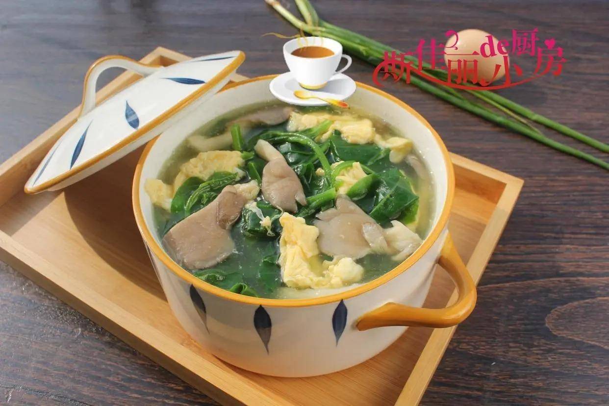 三、推荐菜谱【木耳菜平菇鸡蛋汤】