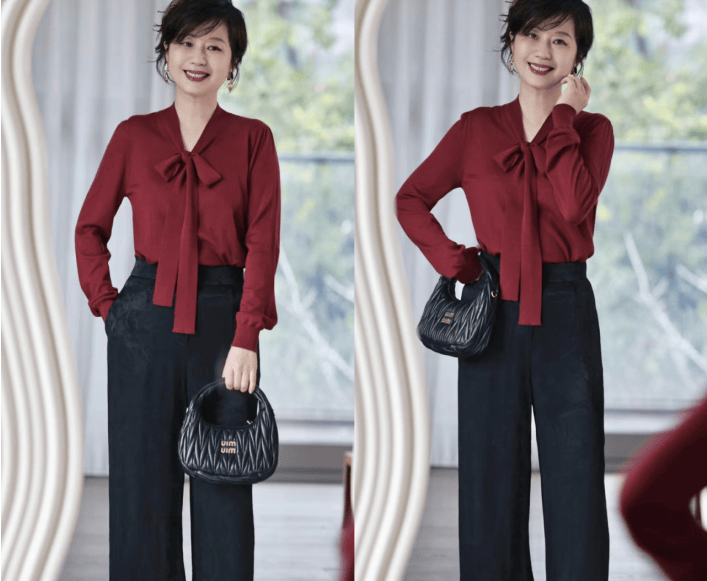 在具体的衬衫挑选上,大家首先要知道自己的肤色情况,肤色白皙,当然可以试一试各种色系的单品。这款红色的衬衫,它可以让女性有一种成熟的风格,飘带的设计,又增加了轻盈感。