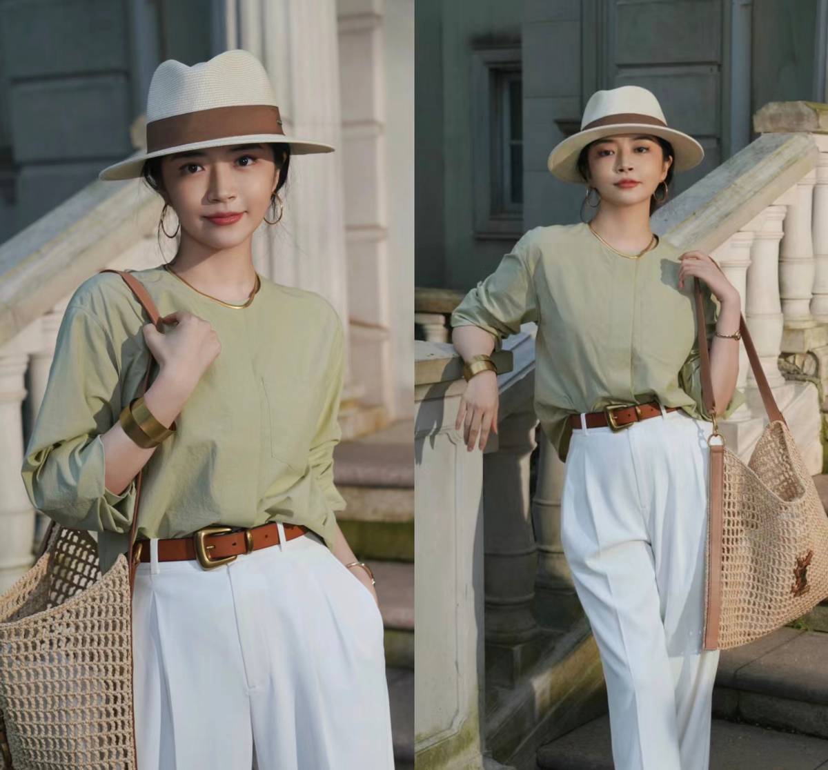 绿色单品和白色服装的碰撞,其实可以打造出最耐看和谐的视觉画面,而且展现出来的着装也不会太过于频繁朴素。