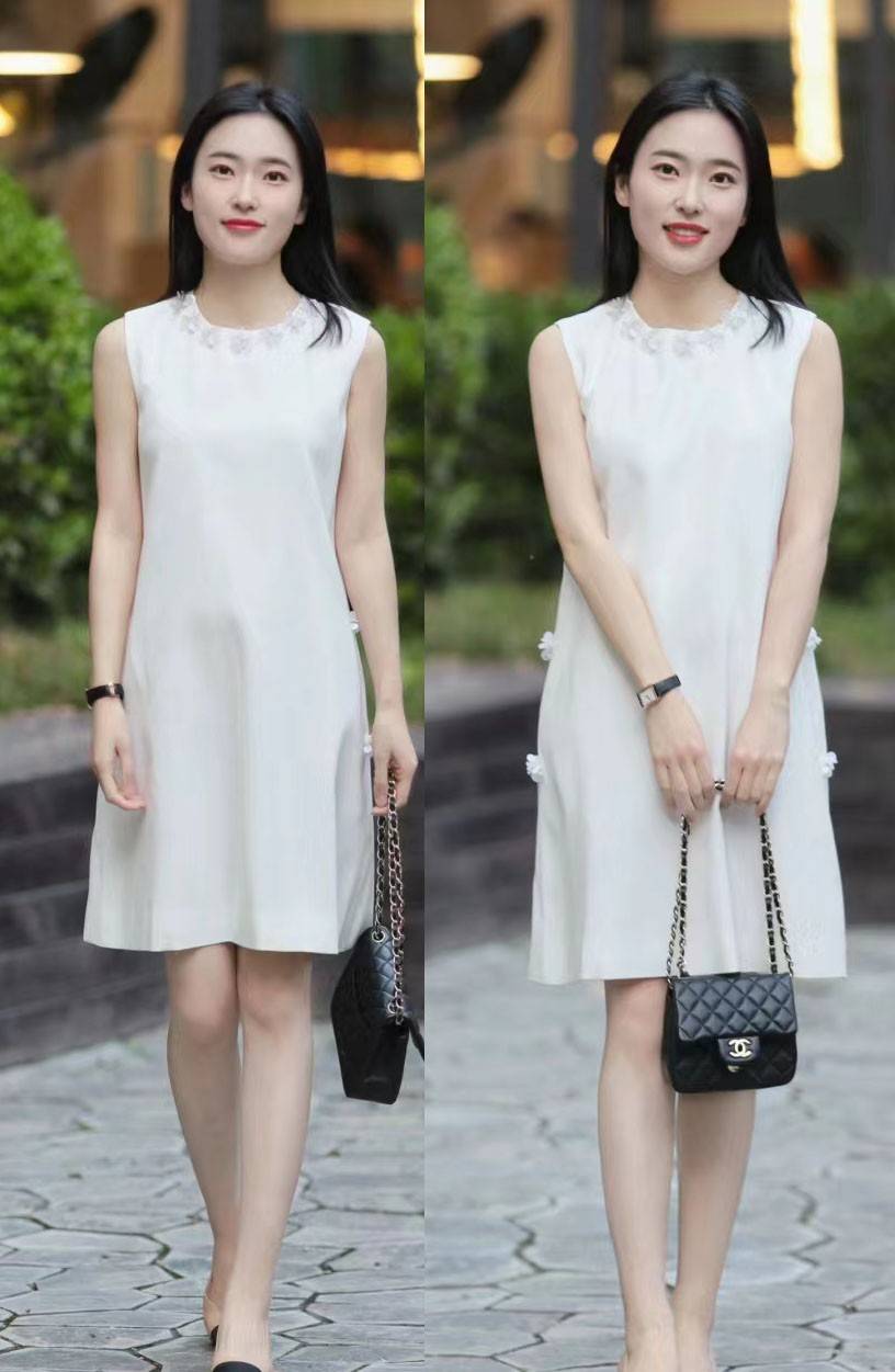 图中这件小白裙就是一个很经典的示范,不论是配色还是版型设计都很简单,但却丝毫没有影响这位博主穿出好气质。