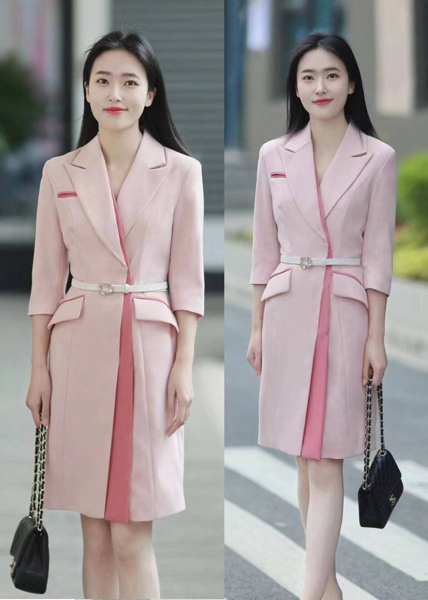 比方说很受职场女人喜爱的西装裙,遵循着利落大气的时尚观念,版型设计一般都比较宽松,那么为了避免模糊腰线、塑造出笨重感的问题,腰带在此时就可以派上用场,简单利落的勾勒出窈窕的线条。