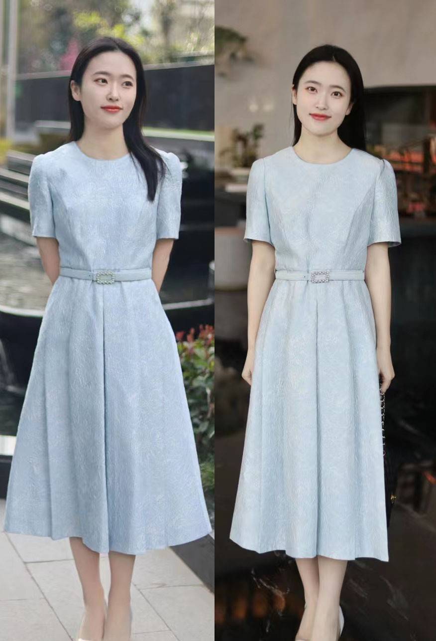 腰带绝对是配饰中最具有性价比的一款,不论春夏秋冬,总是有能用得上的时候。像图中这件浅蓝色连衣裙,就在腰部加入了一条顺色系的腰带,在不破坏风格一体感的同时,保持了对女人味的释放。