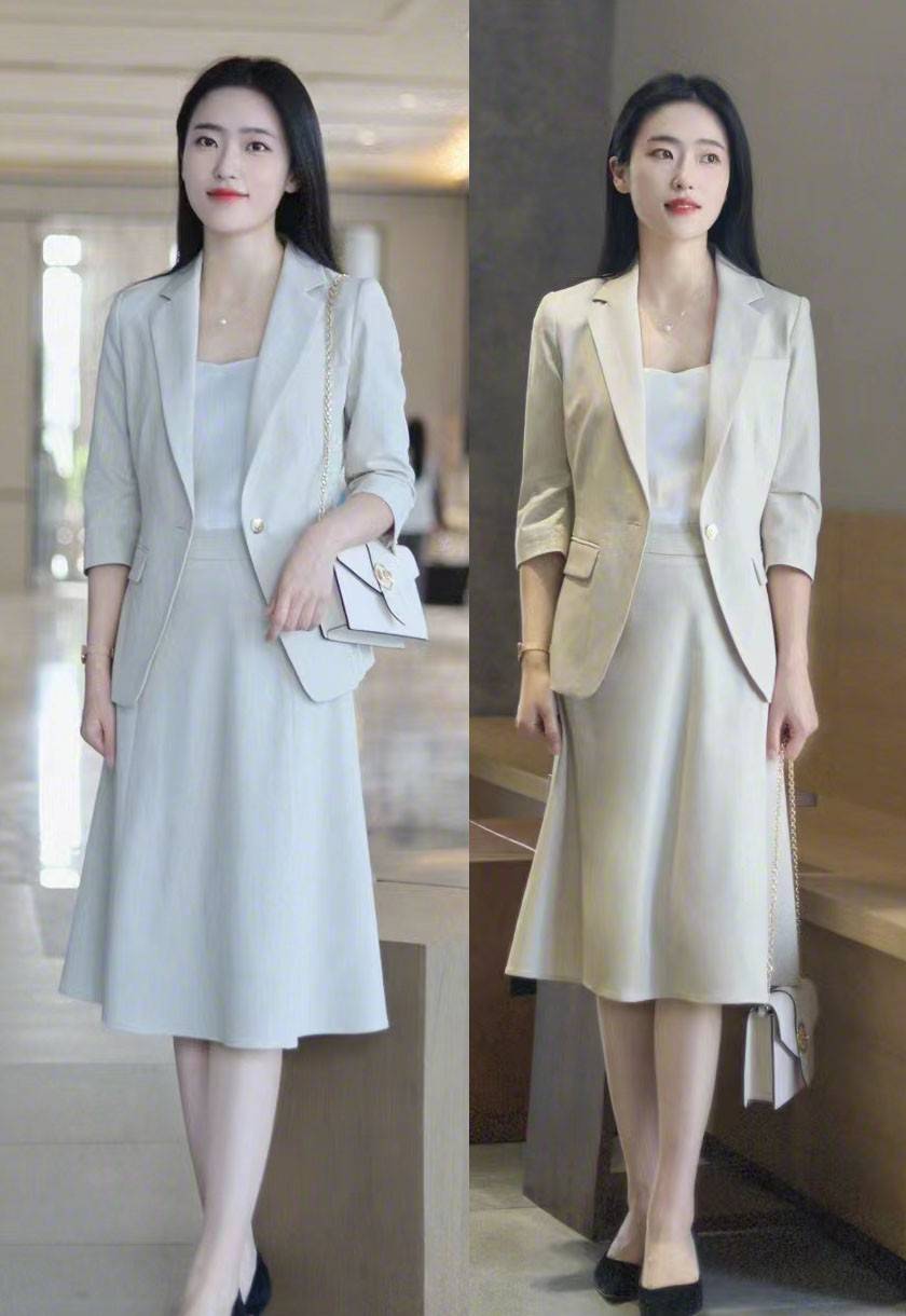可以塑造出腰线的方式不只一种,具体还是要看服装的选择,像是图中这位女士采用的浅色半身裙,对于腰线的呈现效果,显然就是在与上装的搭配中。