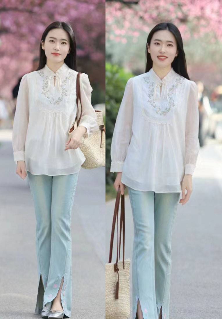 最容易带来时尚感的服装,当然要先从个人条件出发,而不是去盲目跟风。例如上图这件牛仔裤,采用的微喇版型是修饰出腿长的关键,小开叉设计还可以通过塑造露肤度的方式,突出几分清新气息。