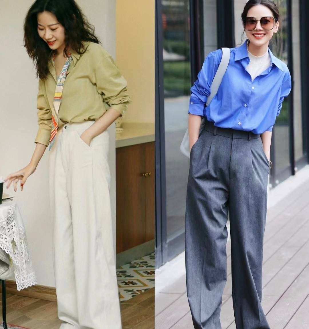 也不是所有的女性都喜欢利用裙子和衬衫配合,也有一些人,她们觉得宽松的长裤和衬衫的匹配,更能显现出一种自在潇洒的风采。