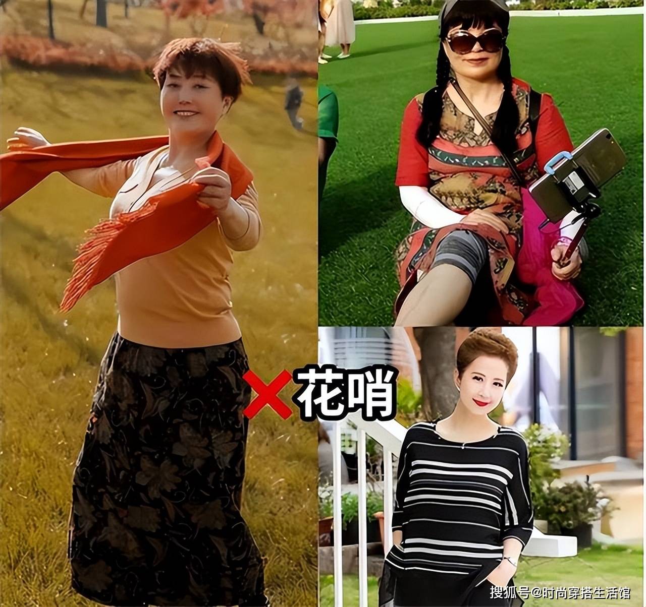 第二点:穿老年装,花色艳俗土气