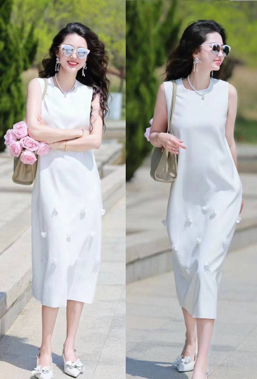 这类配色素雅的裙装,自然会收获大多数人的信赖,减少在日常穿搭时花费的时间,其中无袖设计呈现出露肤面积,还可以更进一步的诠释出清爽感。