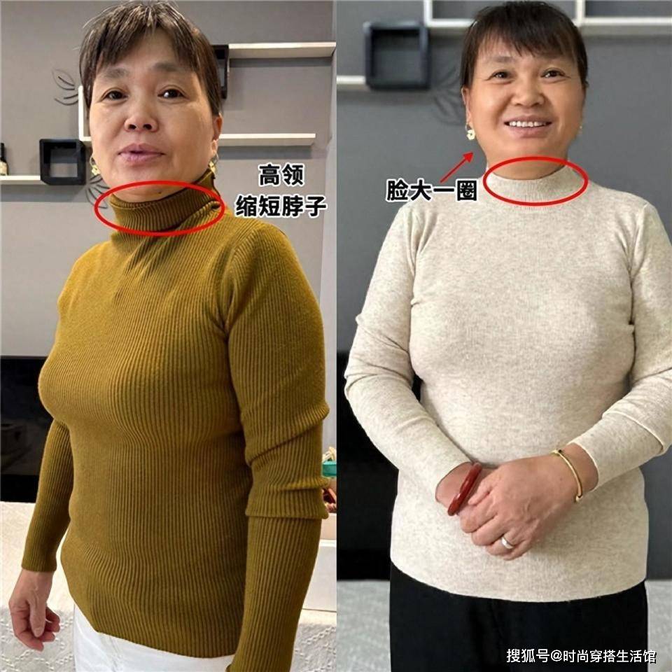 对于五六十岁以上的女人,早晚怕冷的大龄女性,其实并非所有的保暖单品都很值得入手,像上图中的这种“高领设计”的针织衫就需要避免。