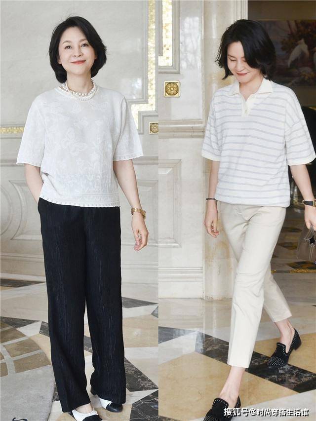 第二种是T恤,这种单品可以称得上是烂大街的存在了,几乎每个人的衣柜当中都人手好几件,对于50岁以上的大龄女性们来讲,在穿搭T恤的时候一定不能随意跟风,不要感觉什么流行穿什么。