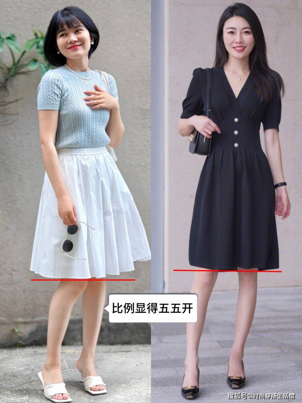 NO.2避开及膝长度的裙子,比例五五开