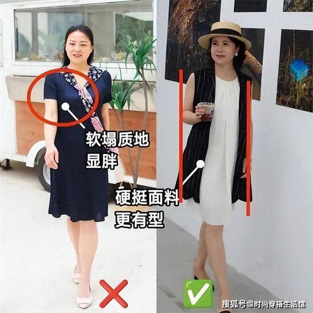 过于软塌的面料还容易导致裙子产生褶皱,这些不规则的褶皱不仅破坏了裙子的整体美感,还进一步加剧了臃肿显胖的视觉效果。