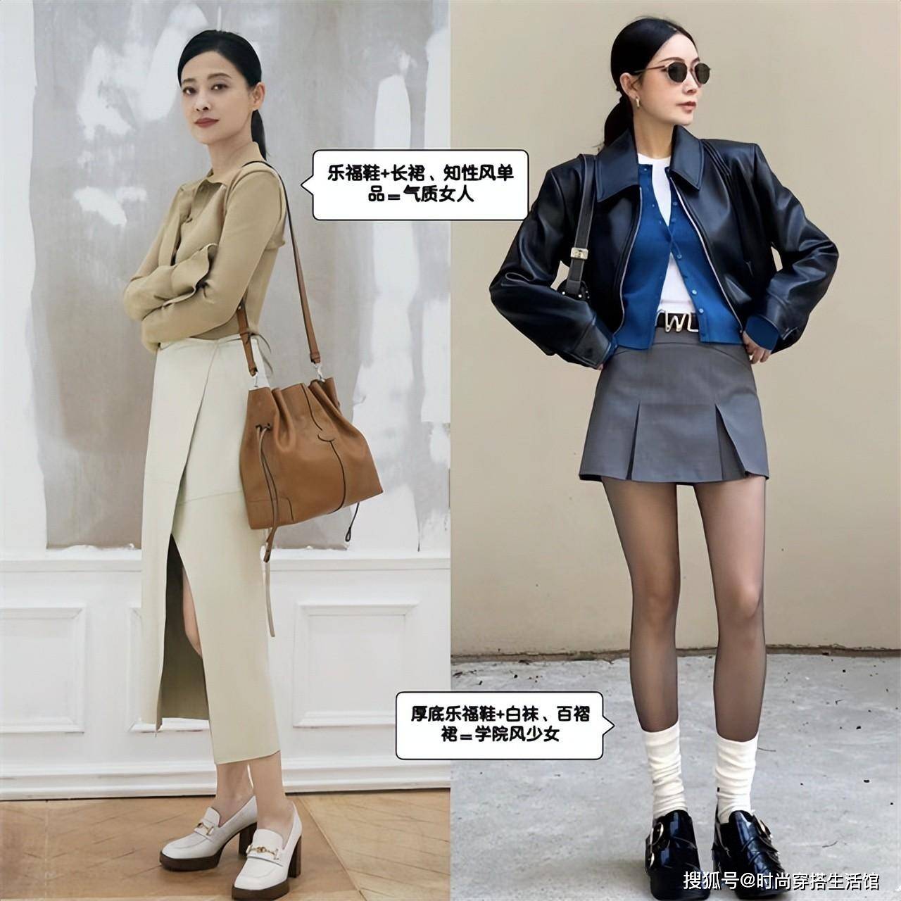 高跟鞋,不管是尖头还是方头,有了细跟的加持,整体风格女人味占据上方,展现优雅气质的一面,这样的鞋子更适合搭配裙装,或者正式感比较强的西裤,与运动属性强的单品不适配。而像中性的乐福鞋、小白鞋就更加百搭一些,可盐可甜,百搭时尚。
