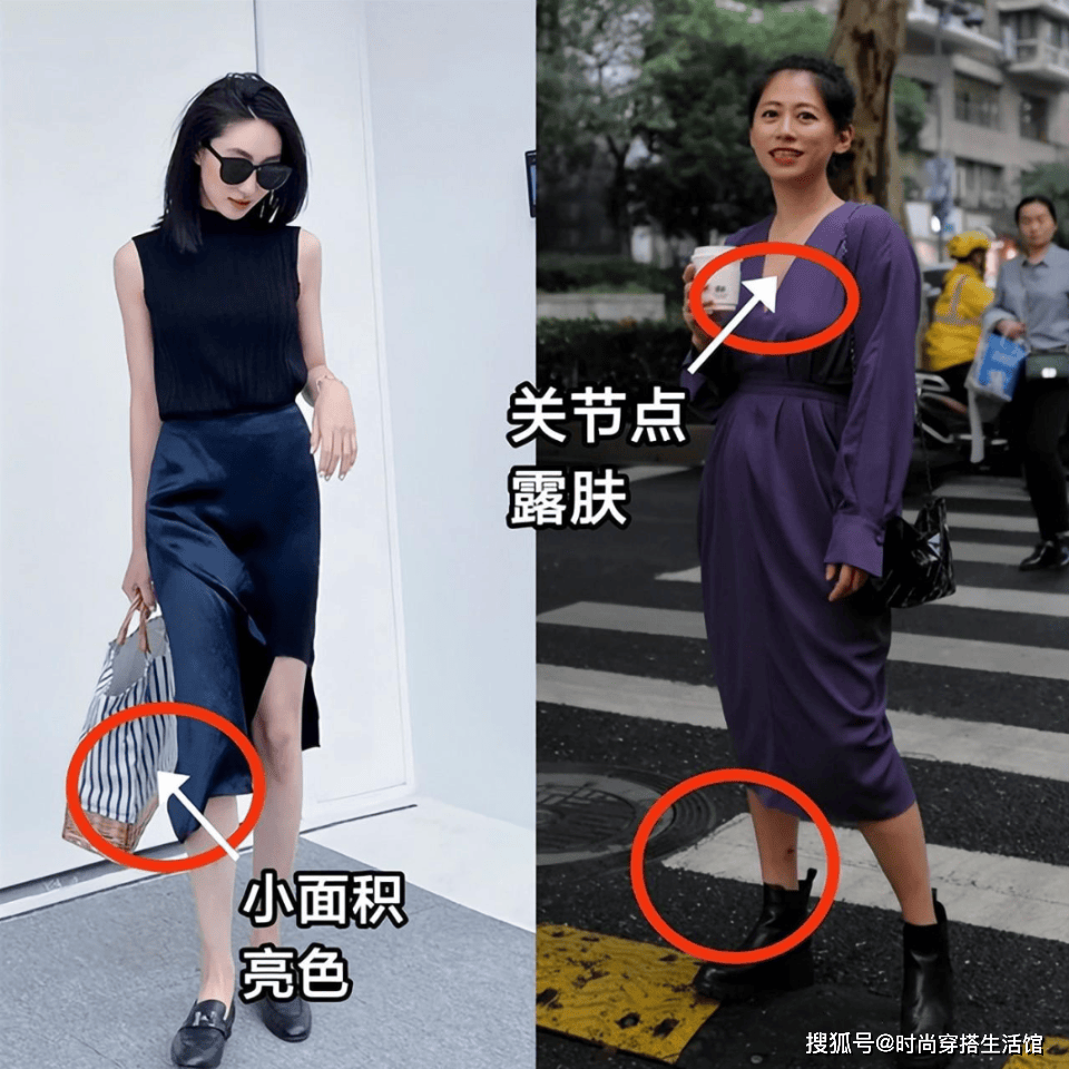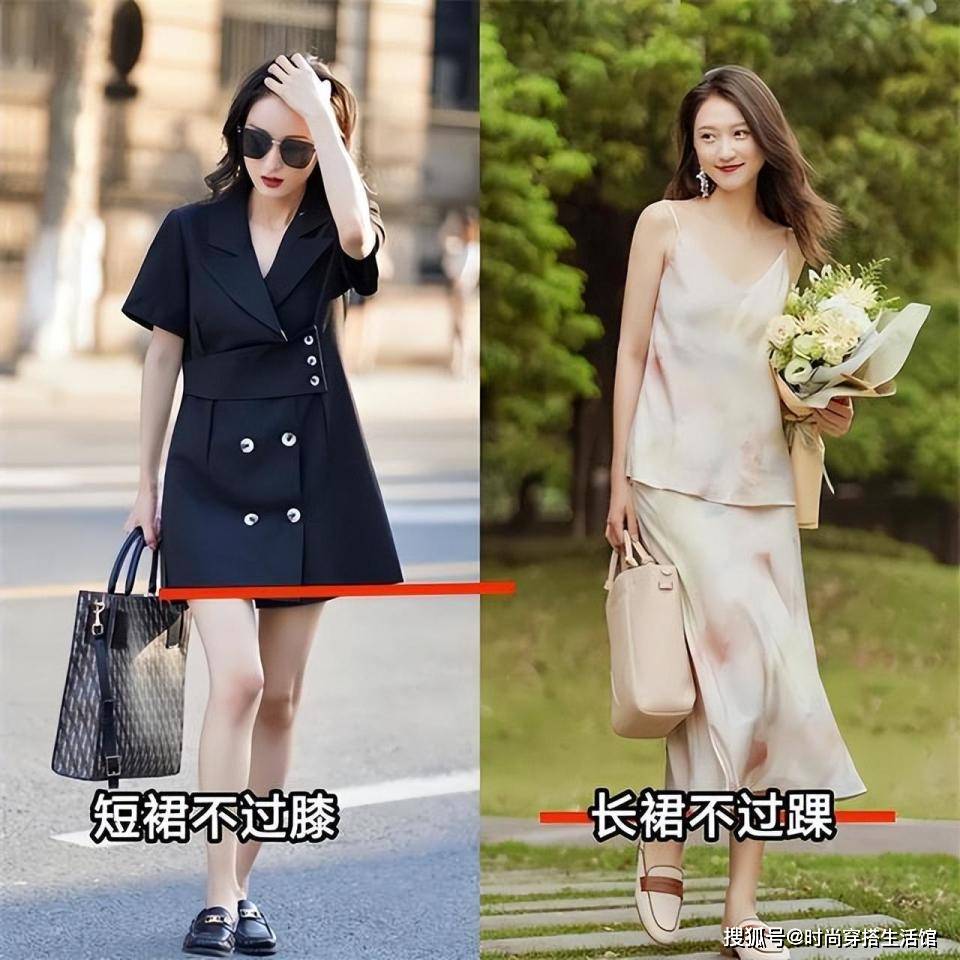 高个子选择连衣裙,千万不要卡膝盖线,不管小个子还是高个子,都很难看,很土。高个子可以发挥自身的腿长优势,选择到大腿中部的短裙,就很亮眼~