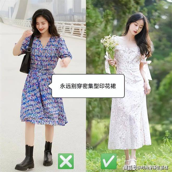 花色过于复杂或鲜艳的裙子看起来非常艳俗土气,还容易导致审美能力降低或者视觉疲劳。既显黑又显胖,很难搭配到合适的鞋子。
