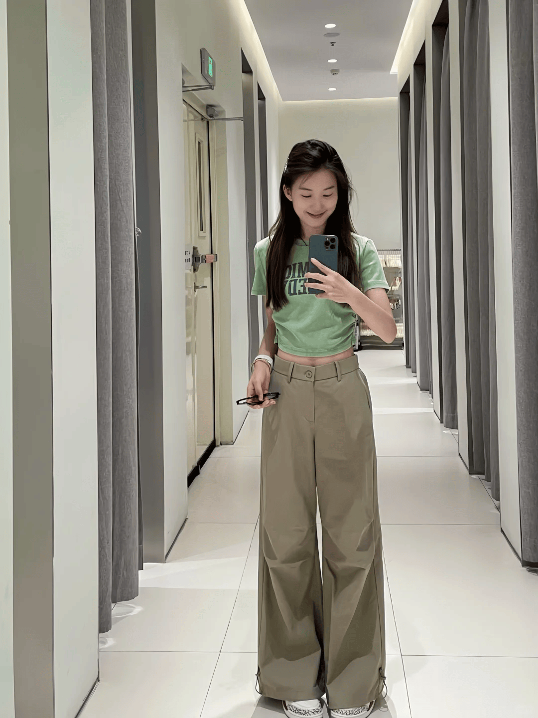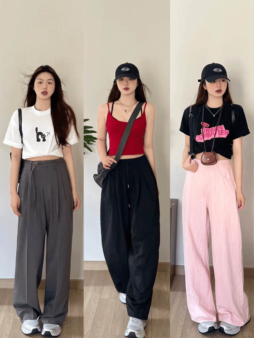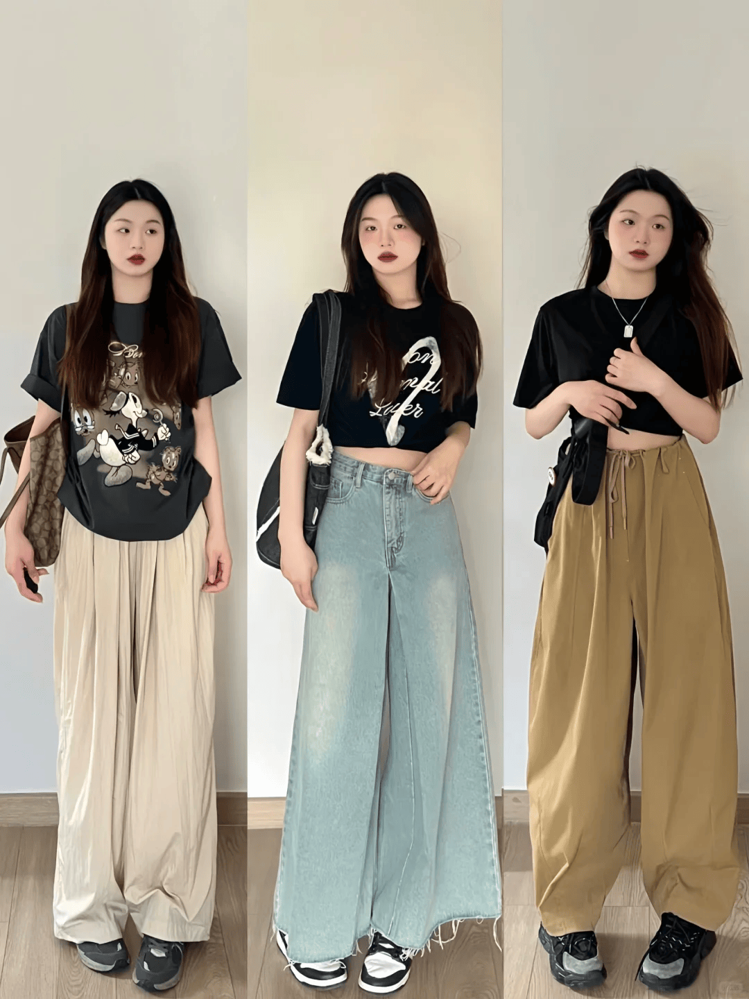 长度选择:对于想要显腿长的效果,建议选择高腰且长度至脚踝或稍微拖地的阔腿裤。这样的长度能够最大程度地拉长腿部线条,同时保持整体的平衡感。