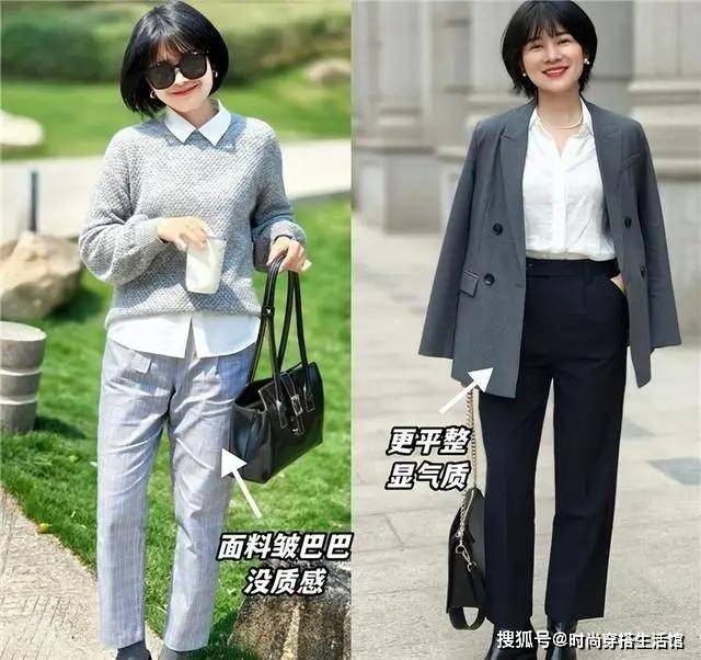 奶奶裤多采用柔软布料制作,结合适度宽松的版型,将舒适性与修身效果完美结合。与阔腿裤相比,奶奶裤更加注重塑形和长度比例,可以很好地平衡身材,打造出清爽、干练的气质。